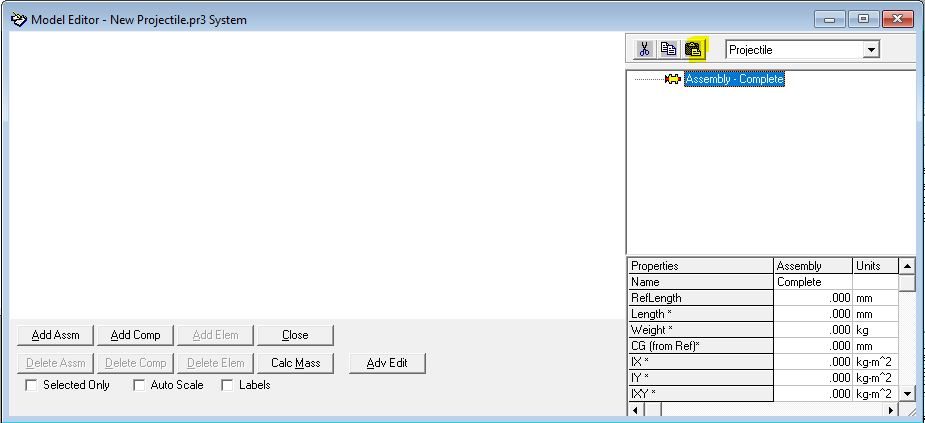 The new Projectile function opens into the model editor which is exactly where we need to be to paste the Projectile Assembly that we copied from our inventory round.