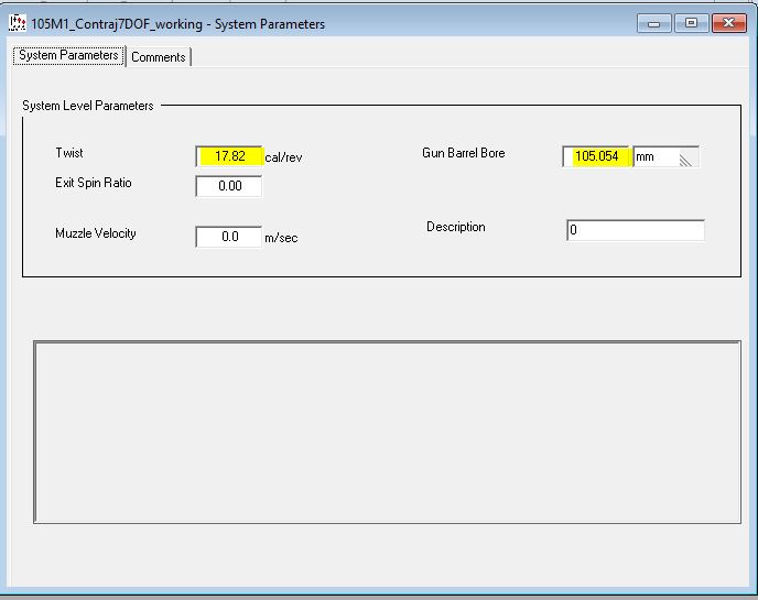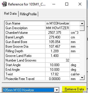 Select the "105mm M103 Howitzer from the list box and click "Retrieve Data". This will populate the Twist and Gun Barrel Bore in our System Parameters form.