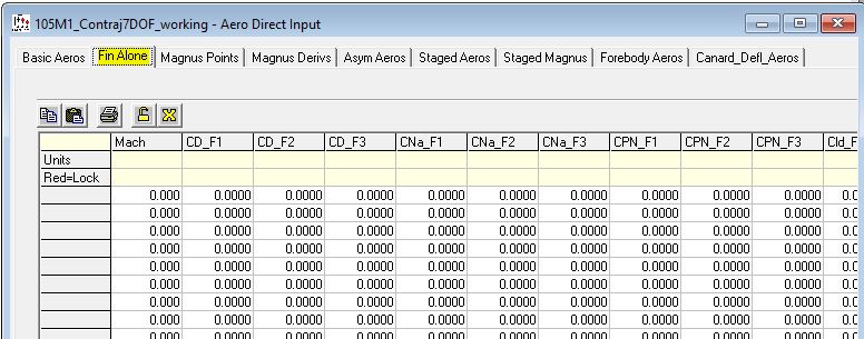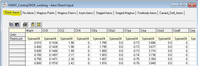 In this section we will be locking several columns in the "Basic Aeros" table as well as the "Magnus Points" table and the "Magus Deriv" table. We will return to use these aero after we model the canards.