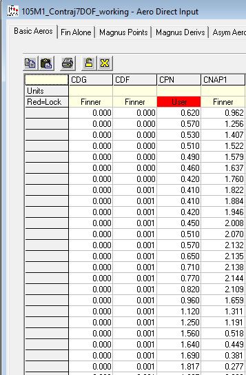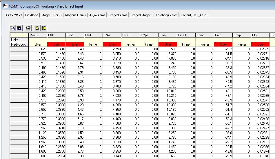 At this point all 6 columns have been copied from the Contraj Formatted output to the Basic Aeros table. Lock the 6 columns. The screen captures below show the updated table with the locked columns. Note CLP had previously been updated and locked.