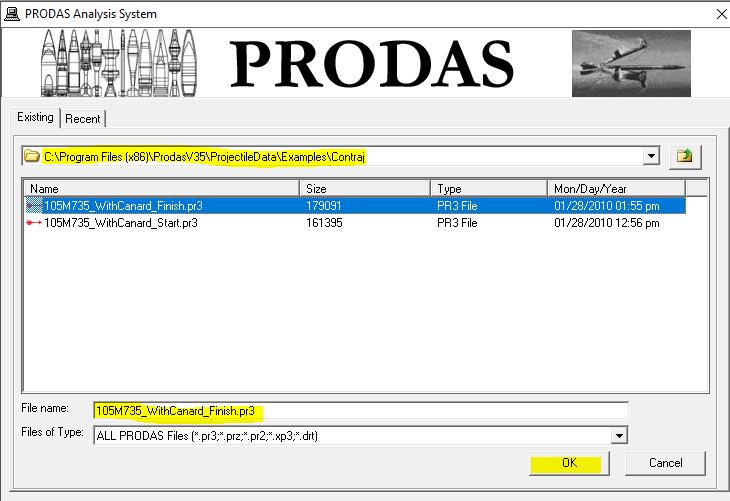 Note it is best to leave this round unchanged since it goes with the other tutorial. If you would like to save the changes that we will make for this tutorial please do a "Save As" from the file menu. I am saving the projectile as 105M735_WithCanard_Finish_7DOF.pr3.