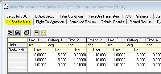 - 2 - Fixed Roll Angle until Roll Constant - This control option starts the control event at the Roll Angle and Time input by the user however; this option takes into account the spin rate of the projectile also and applies the force vector over the range of roll angles the projectile experiences during the time of the control maneuver. For example, the user inputs 90 deg as the roll angle and the projectile is spinning at 0.5 cycles per second with a 1-second-long control event. Therefore, the simulation would start applying the force at a Roll Angle of 90 Degrees but as the projectile spins for the time of the control event the roll angle of the force vector would change 18 degrees per 0.1 second TOF until the end of the control event.