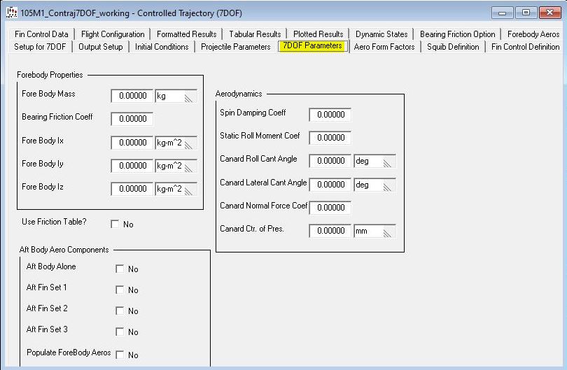 "Use Friction Table" -Allows use of an input table with bearing friction vs axial load. This option will be discussed in another tutorial. "Aft Body Alone" turns on the body alone Clp for the spinning section of the projectile.