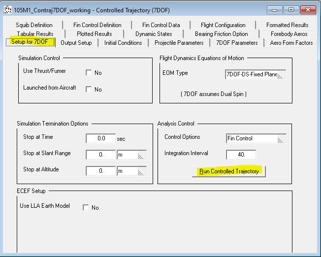 We are ready to run Contraj 7DOF for our first example. Please return to the "Setup for 7DOF" tab and click "Run Controlled Trajectory" as shown below.
