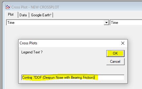 The interface to name the cross plot will appear. For this example, enter "Contraj 7DOF (Despun Nose with Bearing Friction)" then clicked OK as shown below.