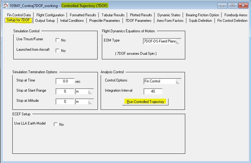 Go to the Contraj 7DOF "Setup for 7DOF" tab and click "Run Controlled Trajectory" as shown below.