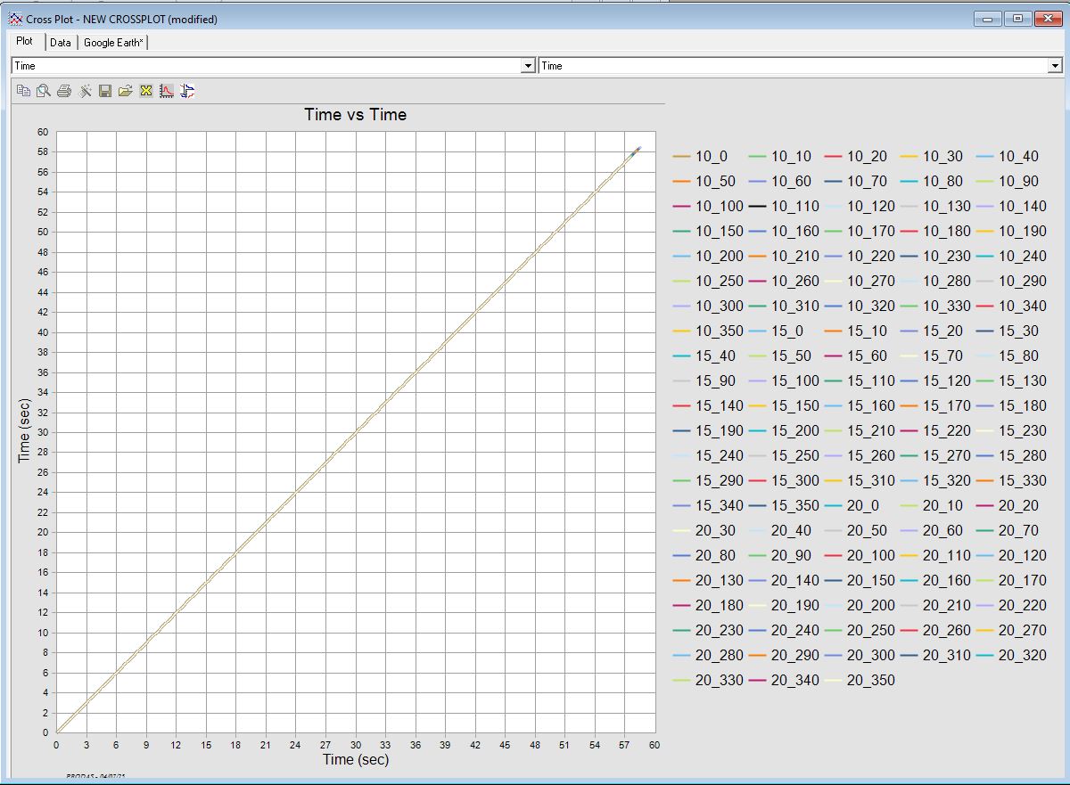 The screen capture below shows the cross plot. Note all the expected legends are visible. The currently displayed plot, Time vs Time, does not show us much.