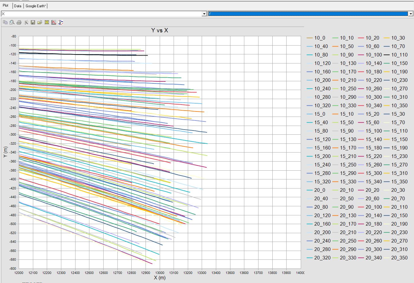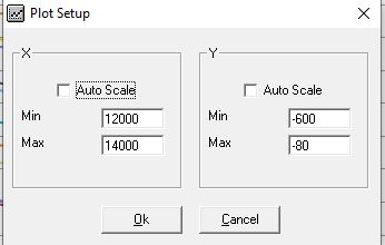 To get a better look at the footprint, I modified the plot scaling to zoom in to the end of the runs. The following are the new plot scaling settings following by the cross plot.