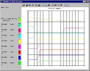 Home Contacts Page Software Products Page Prodas Base Pkg PRODAS Adv Modules GN+C Prototype Tool FCS Editor FCS Strip Chart 3D Visualization Controlled Trajectory Interior Ballistics Terminal Effects Balloting Analysis Case/Chamber Analysis PRODAS SDK Projectile Tracing Tool Ground to Ground Analysis BOT Radar Data Reduction Evaluation Packages Foreign Export Licenses Training Page Support Page          | Flight Controller Strip Chart Debug ToolQuickly find and fix problems in your Control System Using the Visual Editor, you can designate the output of any element to be directed to the 10 channel FCS Visualizer. You can scroll through time, checking the valuesof each of the channels. The timebase can be set to capture every interation in a time window or sample during the complete flight.