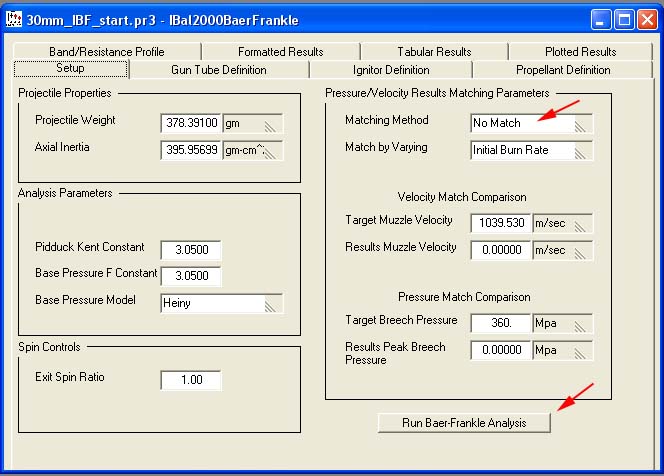 To run the program go back to the setup tab and click Run Baer-Frankle Analysis