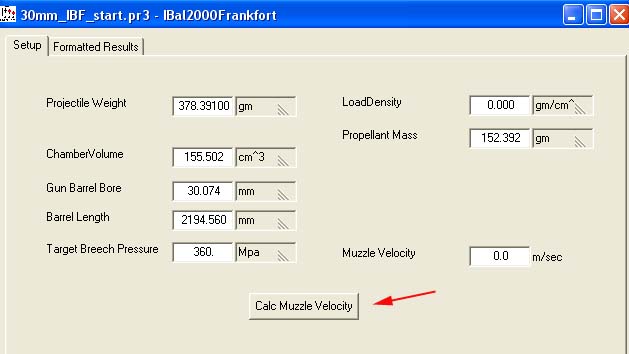 Now we are ready to run Empirical Interior Ballistics but clicking the Calc Muzzle Velocity button.