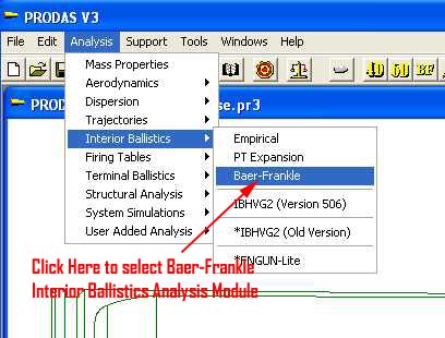 Enter the Baer_Frankle Interior Ballistics Analysis which is found under the Analysis tab as shown below: