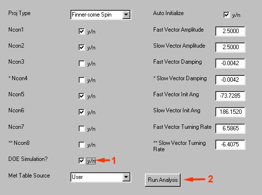 It is important to note that when the DOE option is selected and the analysis is run the Yaw Card Data is overwritten. The Yaw Card Data is the table of Yaw Card test data that is hand entered on the Yaw Card Data tab.